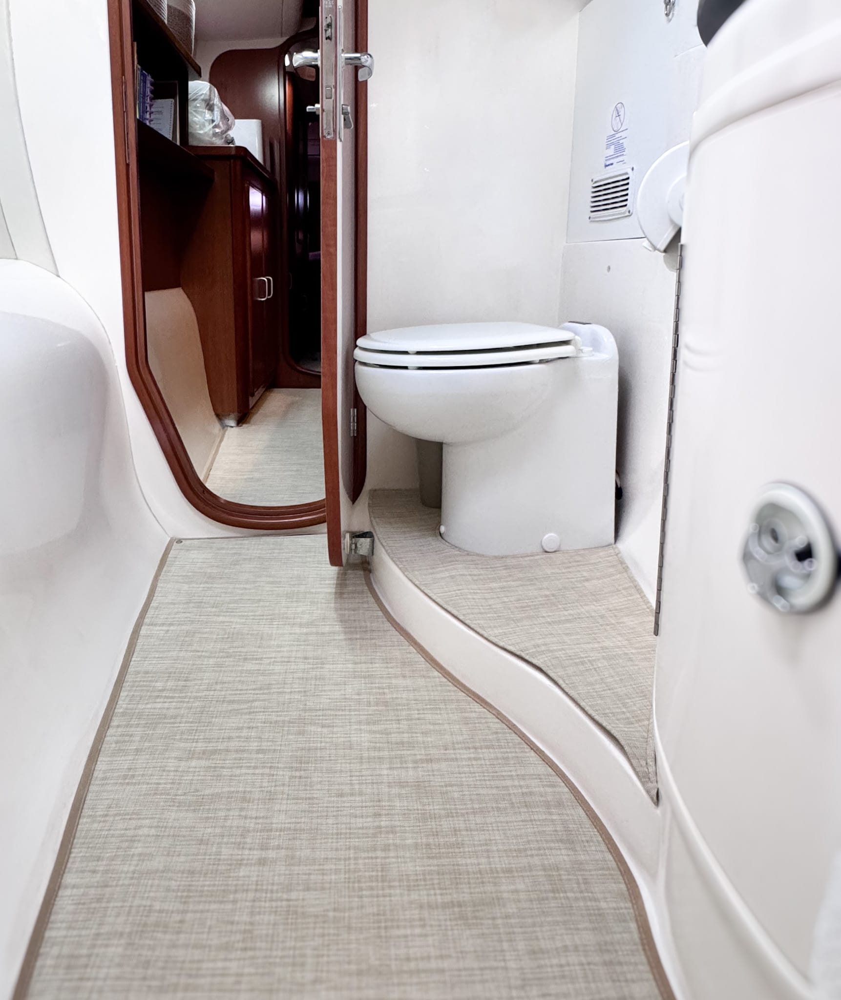 This is our favorite flooring for our boat - stylish, durable, comfy, and super easy to clean. We installed it in our cockpit and throughout the interior, and our feet are forever grateful. We are dealers for this company and can get you the best price. Ask us for a quote!