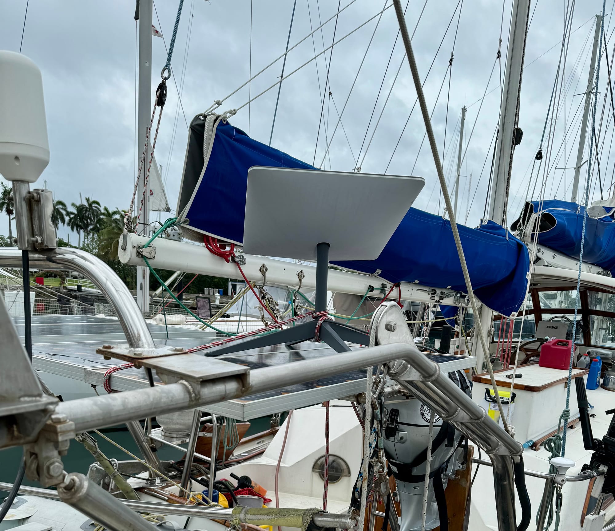 Solar panels on land benefit from fixed mounting angles, consistent sunlight, and open spaces. On a boat, you are working with:
