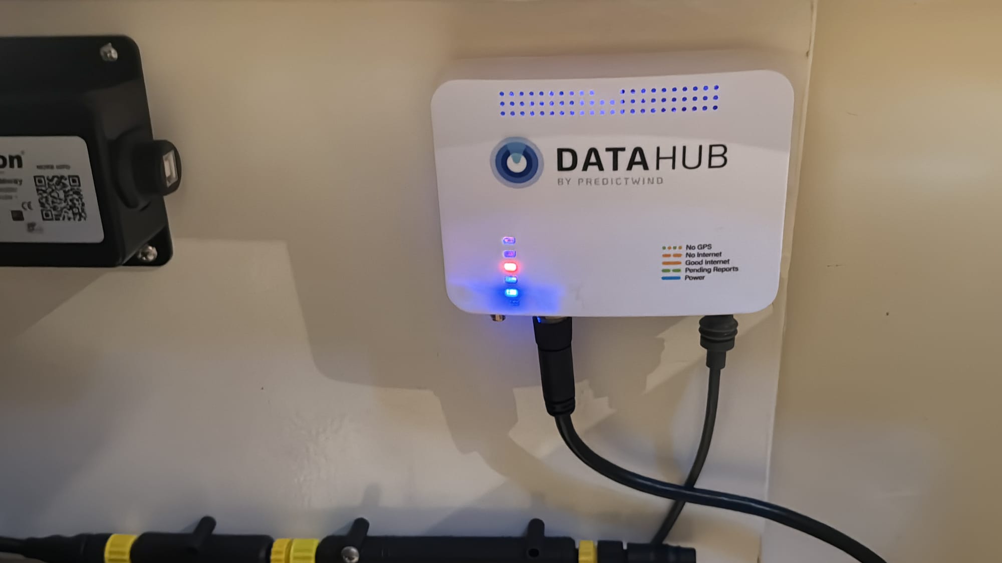 The DataHub is the digital brain of our boat setup. Made by PredictWind (best known for their weather routing and marine forecasting), this device takes all our tracking and sensor data and sends it online automatically.
